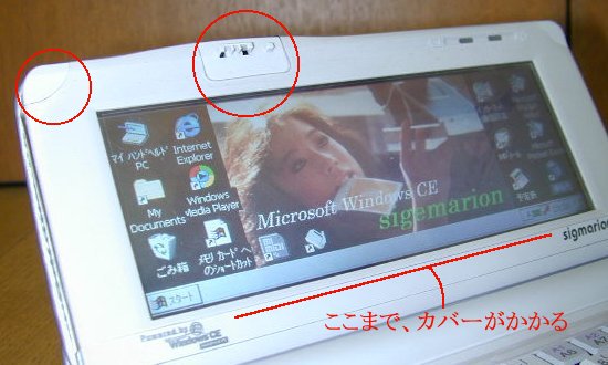 | ■液晶画面にカバーをセット カバーは液晶画面部分がスッポリかかります。 ○部分ピッタリ合わせます。 PS.ワタシの大好きな明菜ちゃんといつも一緒で〜す(このページには関係ないか!?) |